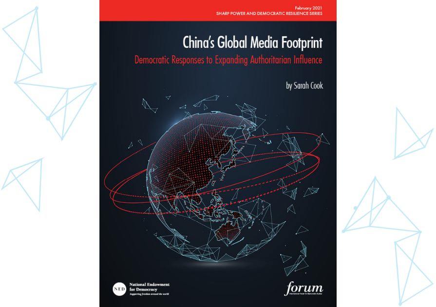 "China’s Global Media Footprint. Democratic Responses to Expanding Authoritarian Influence": trabajo de Sarah Cook en The National Endowment for Democracy que analiza la ofensiva china para extender su influencia en los medios de comunicación en el mundo, y la respuesta que esta política encuentra en instituciones diversas con el objetivo de contrarrestar esa influencia y proteger las instituciones democráticas.