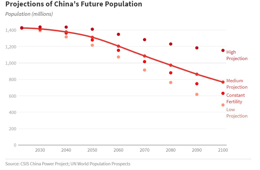 La población de China disminuye y envejece a un ritmo más rápido que la de casi cualquier otro país. En 2022 la población descendió por primera vez en décadas, y en 2023 India superó a China para convertirse en la nación más poblada del mundo. Los cambios demográficos de China plantean retos importantes y prolongados para el país y sus dirigentes.